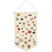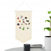 ピンズコレクションタペストリーは、集めたピンズや缶バッジを壁面にレイアウトしながら保管できるディスプレイアイテムです。留めて並べるだけでコレクションが一目で見渡せるため、見せ場づくりと整理を同時に進めやすいのが特長です。棚やデスクを圧迫しにくく、限られたスペースでも展示面を確保しやすくなります。