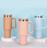 ハンドル付き大容量ステンレスボトルは、取っ手付きのタンブラー形状に、ストローとクリアフタを組み合わせた“大容量タイプ”のボトルです。持ち運びやすさと使い勝手の良さを両立しやすく、日常使いはもちろん、企業・団体様の販促ノベルティやオリジナルグッズ制作にも取り入れやすいアイテムとしてご提案できます。