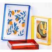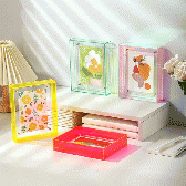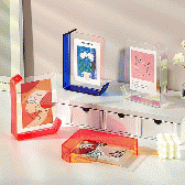 アクリルクリアフォトフレームは、クリア素材ならではの抜け感と、カラーエッジのアクセントで展示物を引き立てるディスプレイアイテムです。写真やポストカード、作品カードなどを挟んで見せられるため、販促用の見本展示から、ブランドの世界観づくりまで幅広く活用できます。グッズ制作やノベルティ企画でも、実用性と見映えの両立がしやすいのが特長です。