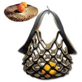 レザー風素材を大胆にカッティングした、ユニークなデザインのトートバッグです。