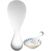 へら部分が浮いた状態で置けるため、受け皿が不要でとても衛生的。 表面にはエンボス加工が施されており、ご飯粒がつきにくく よそいやすさも抜群です。