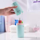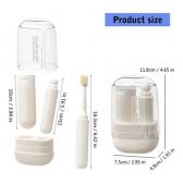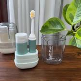 歯ブラシ、歯磨き粉用ボトル、コップの3点が 手のひらサイズに収まる、携帯に便利な歯磨きセットです。
