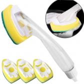 手元のボタンを押すだけで洗剤が出る、便利なディスペンサー 機能付きのキッチンブラシです。