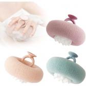 リング状のスポンジ面で泡を含ませやすく、手で握って洗いやすいのが特長です。反対面には突起付きのマッサージパーツが付いており、気分や部位に合わせて使い分けることで、バスタイムの満足感を高める企画が組み立てやすくなります。