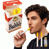 タバコの箱に見えるパッケージの中に、 タバコ風のシャボン玉スティックが入ったユニークなアイテムです。