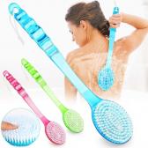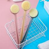 手の届きにくい背中も楽に洗える、カーブ形状の ロングハンドルを採用したボディブラシです。