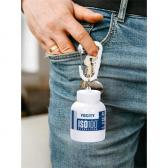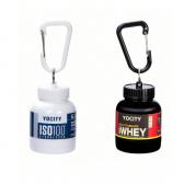 プロテインボトルを思わせるボトル型デザインに、カラビナで“持ち歩き”を組み合わせたミニホルダーです。鍵束やバッグ、ベルトループに取り付けやすく、日常の携帯小物としても、フィットネス領域の企画グッズとしても展開しやすい方向性が考えられます。