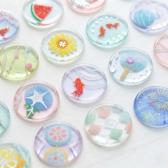 おはじきシールの魅力は、表面のつや感と奥行きを感じさせる見た目にあります。小さめのサイズ感でも存在感を出しやすく、企業ロゴやブランドモチーフ、イベント名に合わせたアートを印象的に見せやすいのが特長です。かわいらしい雰囲気、幻想的な雰囲気、季節感のある表現など、企画内容に合わせた見せ方がしやすく、配布物でありながらしっかり記憶に残るデザイン設計が可能です。