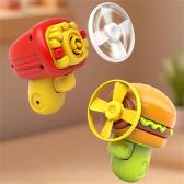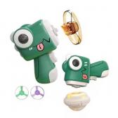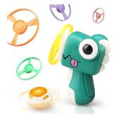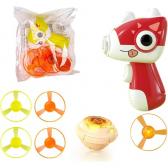 1つのガンでフライングディスクとコマを楽しめる、遊び心溢れる手のひらサイズのスピニング玩具です。