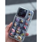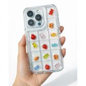 ケース背面の格子状やハート型のポケットに、ミニチュアパーツやビーズ、写真などを封入できます。